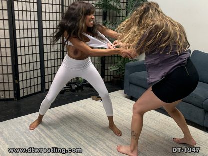 September Reigns is one gorgeous lady but Erika Jordan has a real problem with her, she claims to have beaten her in their last match but September thinks different so when they see each other in the office sparks fly immediately. From the office they fight their way into the waiting room where the fight gets serious, yes they strip each other till they are naked and now the real fun starts. September is the first to strike hard as she gets Erika on the couch and with a surprise bite to her pussy has her stunned but she fights back as they stand with a lock up until Erika throws this black beauty to the couch and now it’s her turn to bit the pussy but again September uses her teeth as she spreads Erika’s sweet butt cheeks pulling one to her mouth she takes a big bite as we get the best possible view. Both ladies now fall to the floor and go directly into 69 breast biting where both clamp down on beautiful tits till they can take no more and fall away and we aren’t even a third of the way in. Butts breasts and pussies are all eaten constantly in this wild match as both these beauties keep up the action. Sweet tender flesh between pearly whites, even into a biting 69. Good to see September again as her beauty and energy is always a breath of fresh air and Erika — well don’t need to say much about Erika Jordan as she is one of the most popular ever and for good reason !!!!!!